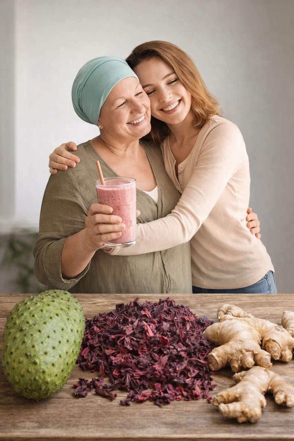 Una potente mezcla de cúrcuma , guanábana e hibisco que reúne los mejores secretos de la naturaleza para fortalecer el sistema inmunitario, desintoxicar el cuerpo y promover la salud general .