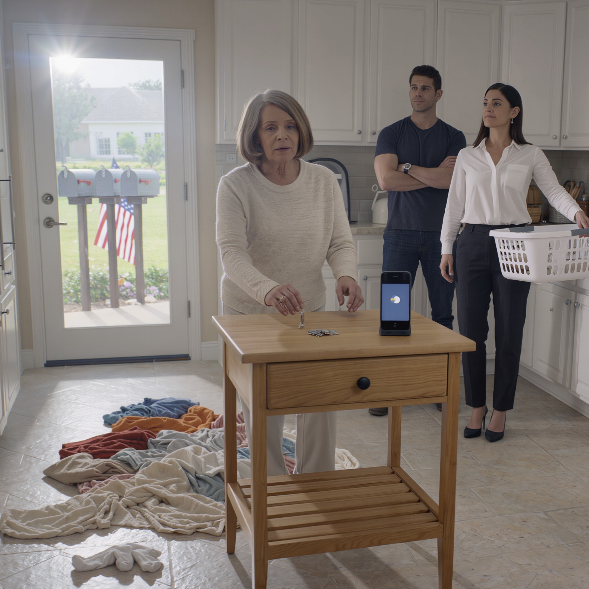 Acababa de doblar la última prenda cuando Avery entró, con pasos tan rápidos que cortaban el aire. No me miró. Miró la cesta en mis manos como si mi tacto la hubiera contaminado. Entonces, sin decir palabra, golpeó el borde con la palma y tiró toda la carga al suelo: calcetines, camisas, toallas; todo se desparramó como escombros tras una explosión.