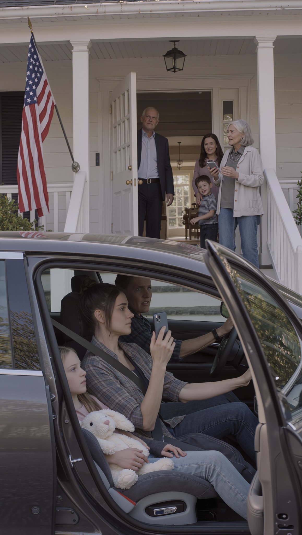 Chloe estaba de pie junto a las puertas automáticas con su conejo bajo un brazo y la otra mano alrededor de mis dedos como un cinturón de seguridad. Se veía mejor que antes. También parecía alguien que había aprendido demasiado pronto que los adultos pueden decir que está bien mientras te conectan tubos.